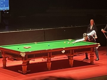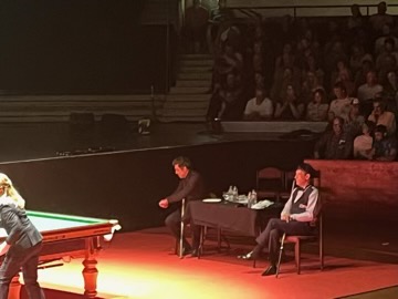 Ronnie dal jednu stovku, na stole tou dobou zůstávala poslední černá. Nechal jí odehrát paní rozhodčí. Bylo to krásné (a atmosféru uvolňující) gesto, byť jí to tam nakonec nespadlo. Ale moc nezbývalo!